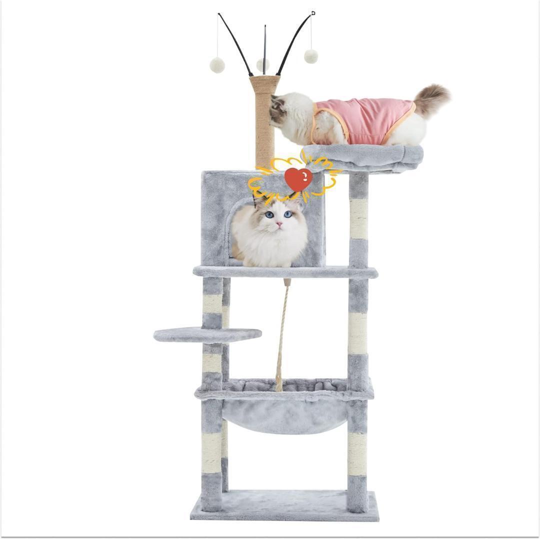 - キャットタワー おしゃれ 猫タワー 省スペース 全麻縄巻き 爪とぎ ストレス解消