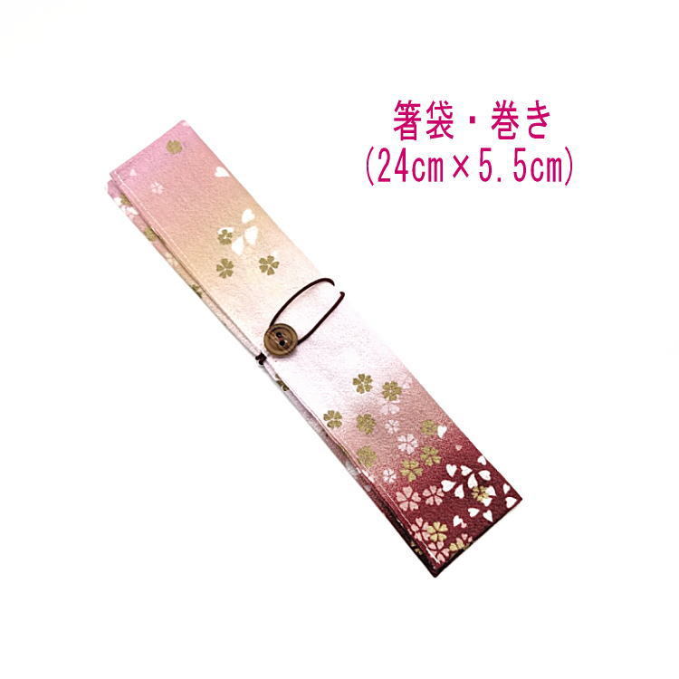 > 箸袋・巻き(24cm×5.5cm)【和柄 ちりめん風 桜舞文様 レッド】エンボス加工 はし袋 箸入れ 箸ケース マイ箸 お祝い 花 サクラ 還暦祝