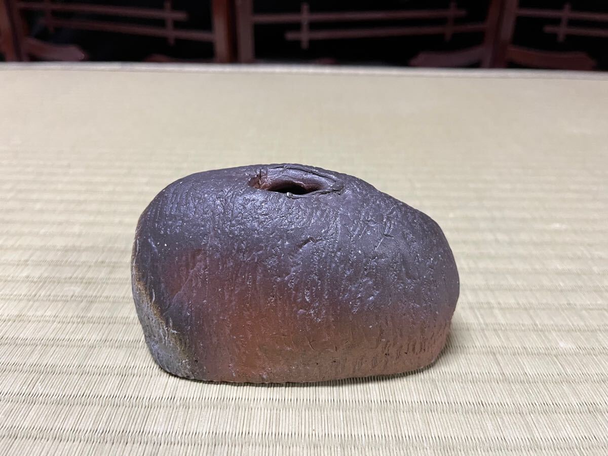 - 備前焼 玄明 窯変 オブジェ 置物 1輪差し 花入 花器 冊子