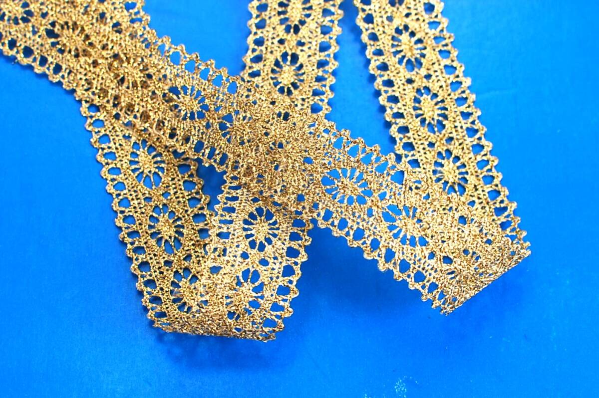 - 10mまき レース・ラメ糸 17mm巾 ゴールド 【手芸・縫製】