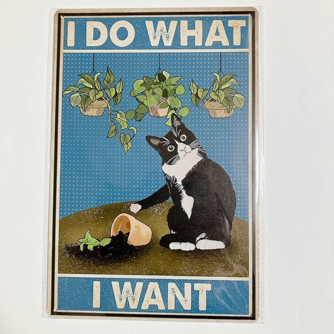 - ブリキ看板 ウォールデコレーション ヴィンテージ 黒猫 壁掛け レトロ カフェ ガーデニング