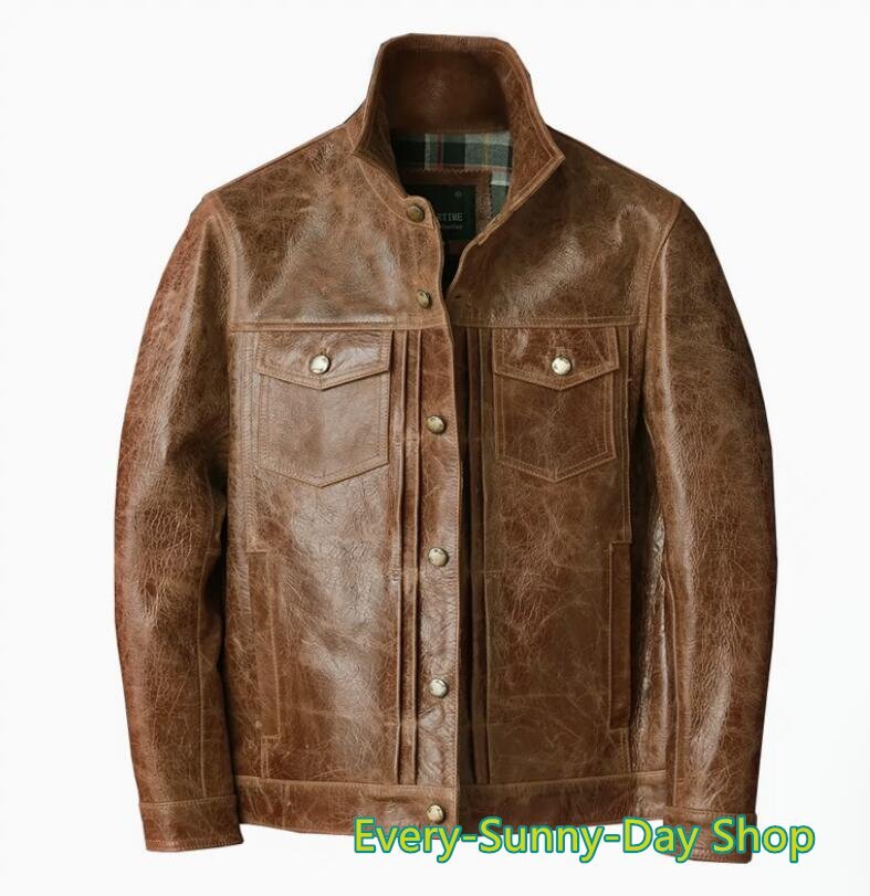 - 新作秋冬牛革 レザージャケット レトロ アメカジ 本革 ライダース メンズファッション バイクレザー カウハイド 革ジャン コート S~5XL