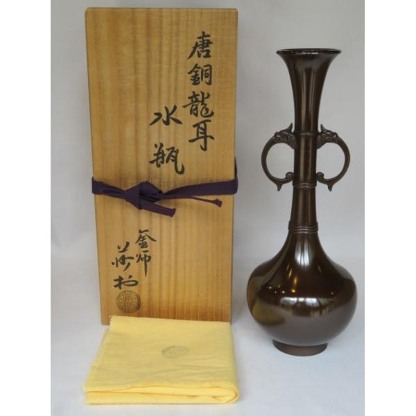 > (八月☆特売品)大阪府 角谷莎村作 唐銅龍耳水瓶 茶道具【税込・送料込】【中古・美品】