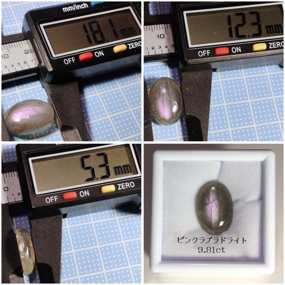 - ①ピンクラブラドライト ルース カボション ピンクシラー 9.81ct ムーンストーン