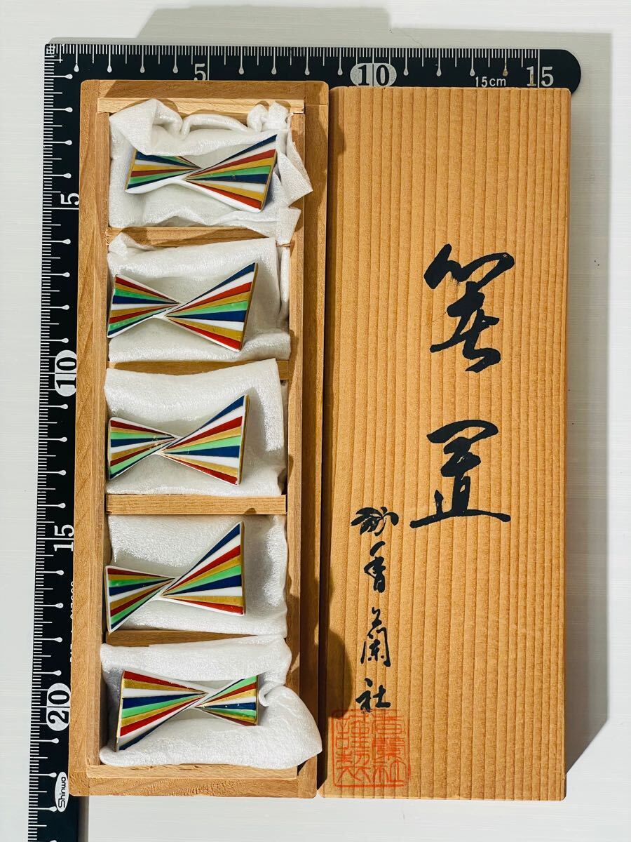 - 香蘭社 箸置 リボン 蝶 箸置き 5個 桐箱 現状品