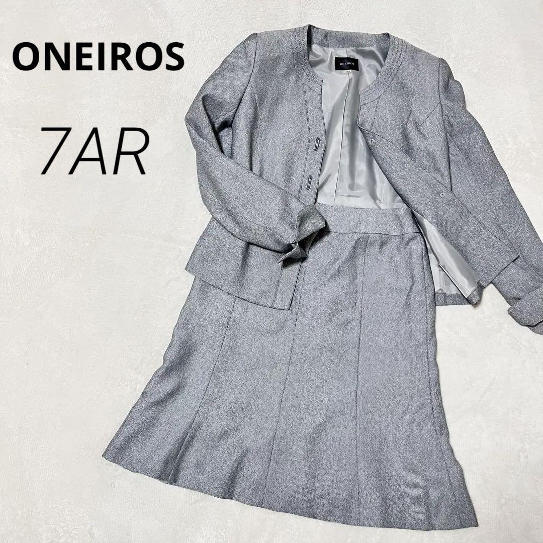 - ONEIROS オネイロス 小さいサイズ ノーカラージャケット スカートスーツ 7AR グレー