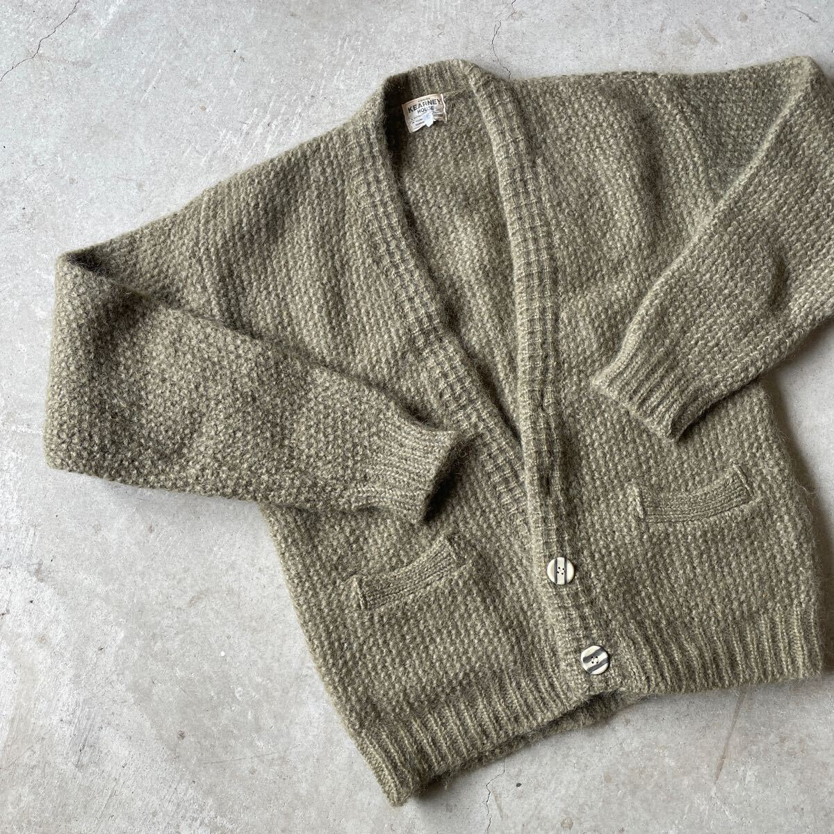 - ビンテージ 起毛 オーバーサイズ Vネック カーディガン 4 ヴィンテージ メンズ Lサイズ レディース 古着 ベージュ カーキ