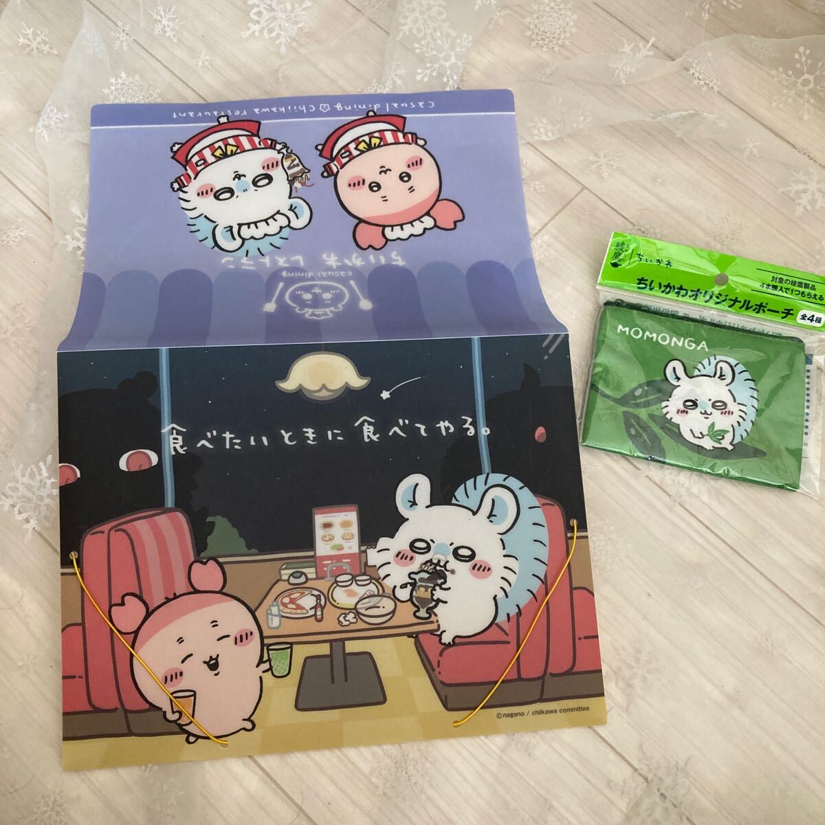- ちいかわレストラン モモンガ 古本屋 カニちゃん バインダー A4 未使用 ポーチノベルティ