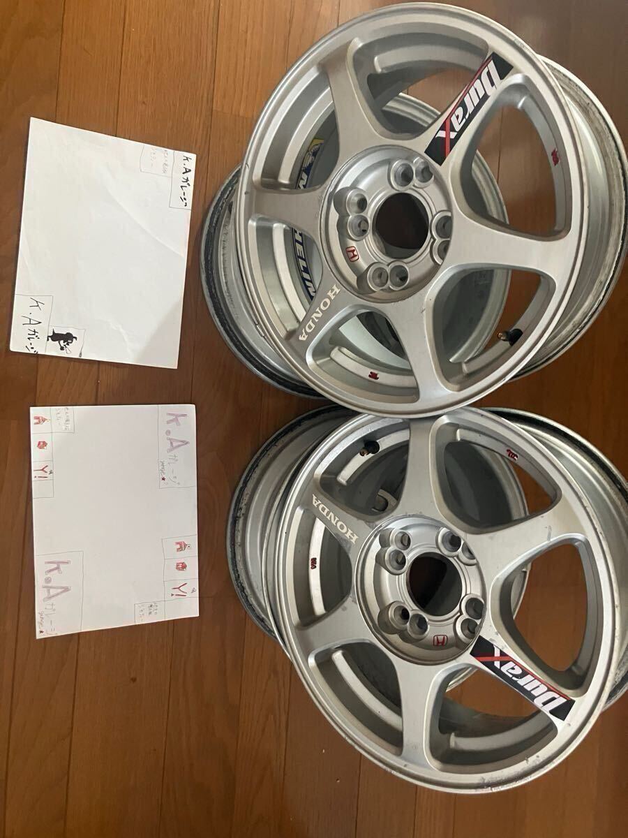> ホイールRacing HONDA14インチ4穴1セット使わなくなったので売ります。「バラ売り不可」アルミホイール14、オフセット40ke-7、14.6J