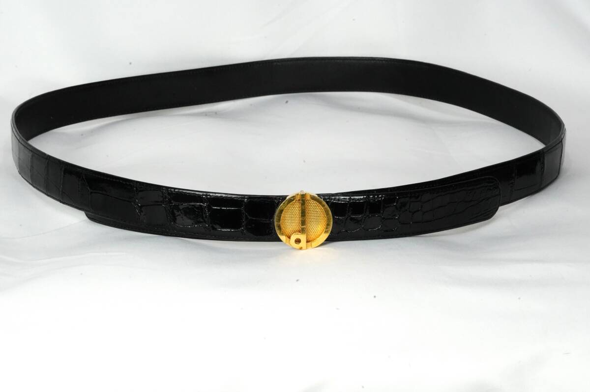 - dunhill ダンヒル クロコダイル ゴールド金具 バックル ベルト ビジネス 紳士 メンズ ブラック