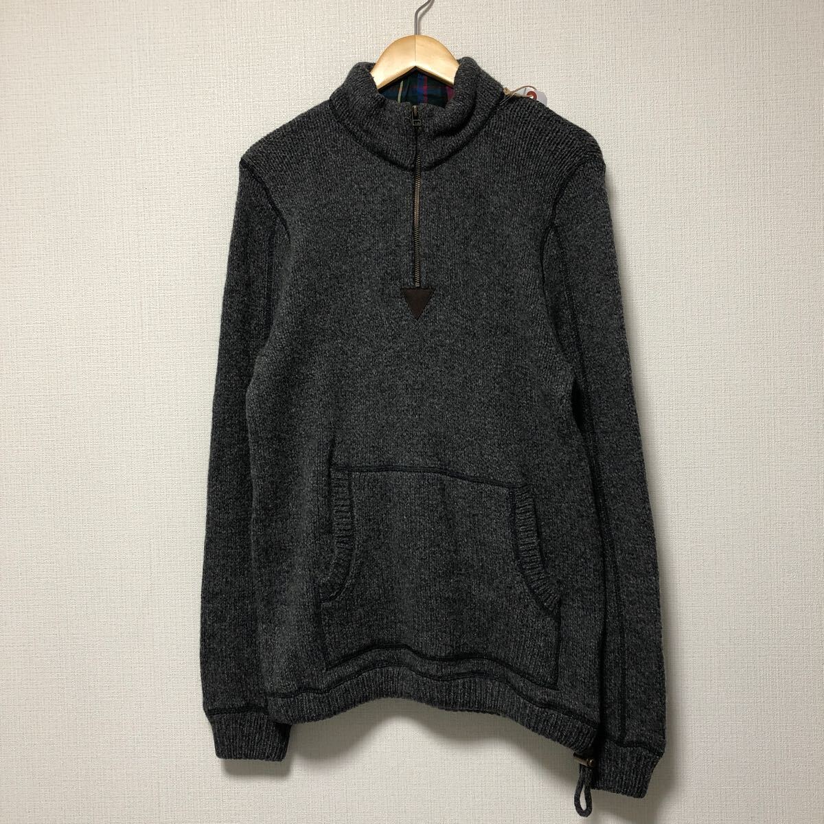 - (k) L.L.Bean レザーパッチ ハーフジップ ニット ウール セーター グレー 長袖 メンズ サイズM