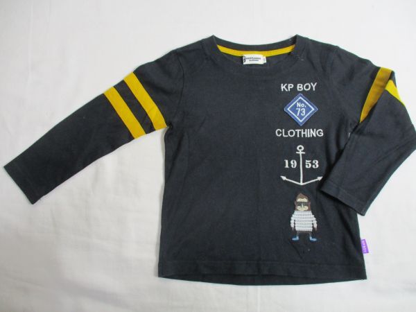 - BG218【Knit Planner・ケーピー】ロゴ刺繍 長袖 Tシャツ 男児 濃青 100