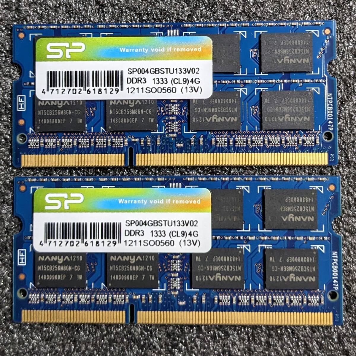 - 【中古】DDR3 SODIMM 8GB(4GB2枚組) シリコンパワー SP004GBSTU133V02 [DDR3-1333 PC3-10600 1.5V]