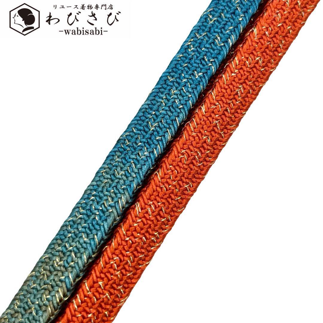橙色と青色のグラデーションのお色味に御岳組の織模様が素敵なお品でございます。