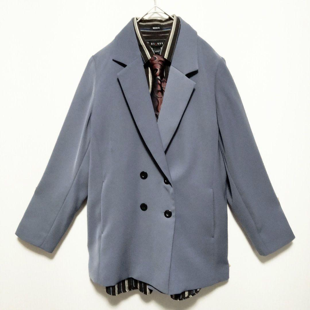 > 人気 Mサイズ コーディネート ネクタイシャツ テーラードジャケット ダブルボタン ストライプ ブラウン パープル スーツ