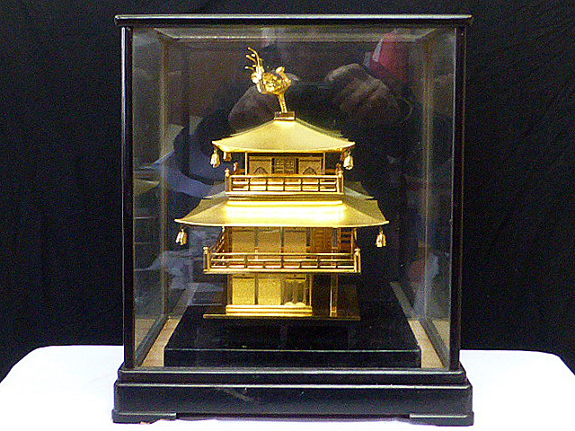 > dc58 金閣寺 金属製 縁起物 風水開運 専用ガラスケース・インテリア/アンティーク/置物・241227