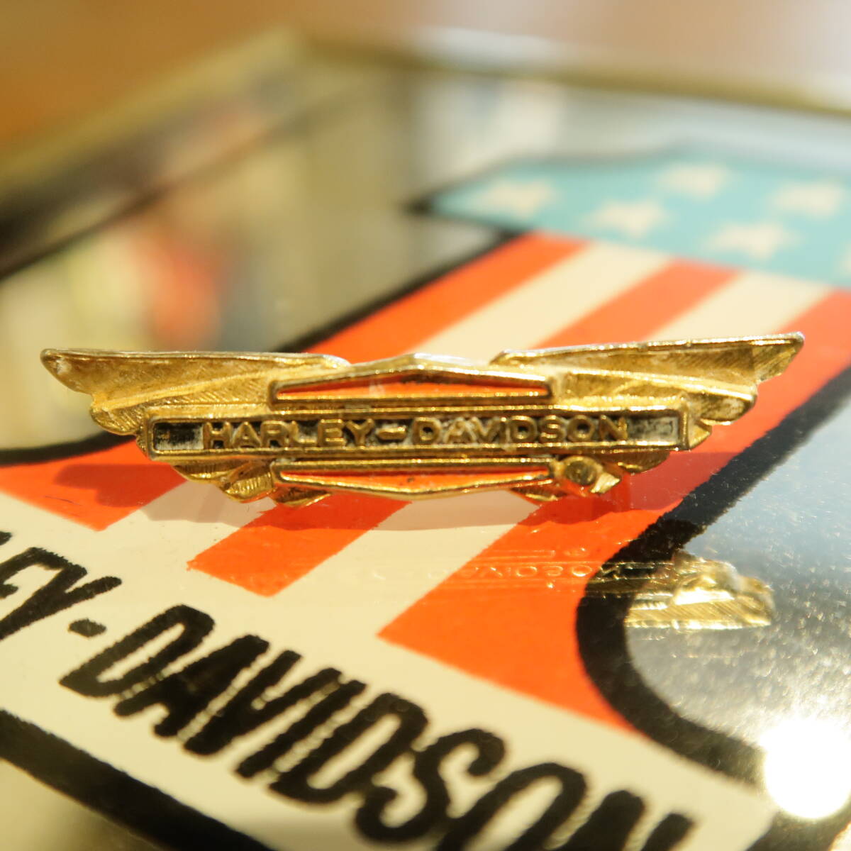 - 70s 80s HARLEY DAVIDSON ビンテージ ピンバッジ 金 ウィング ロゴ メダリオン CHOPPER バイカー