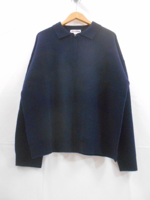 > 70 送100サ 0102YD07 TTT MSW ティーモダンストリートウエア 24AW ジップアップ ニットポロシャツ ネイビー サイズL 未使用