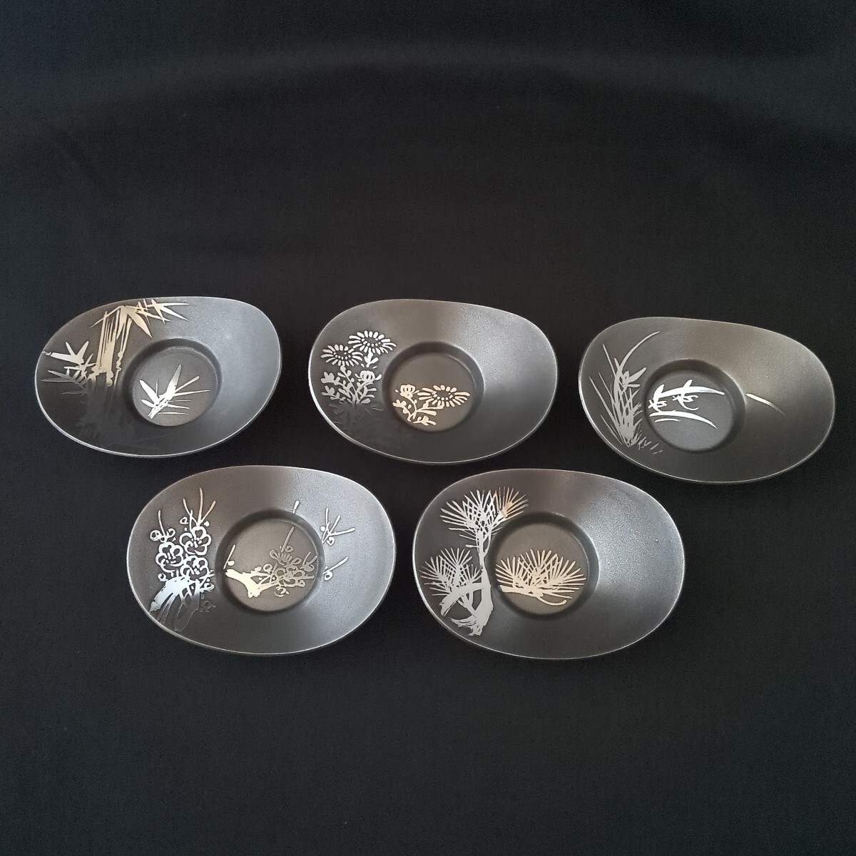- 4135 乾茂號造 本錫製 象嵌 茶托 茶器 煎茶道具