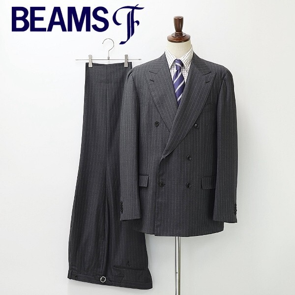 - 新品◆BEAMS F ビームスF シルク混 ストライプ柄 ダブル スーツ セットアップ グレー 56/6R