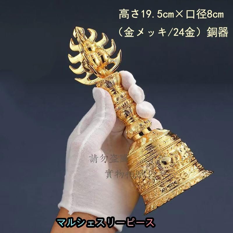 - 金剛鈴 大々型 密教で使われる仏具 密教法具 前具 寺院仏具(金メッキ/24金)銅器 (B)