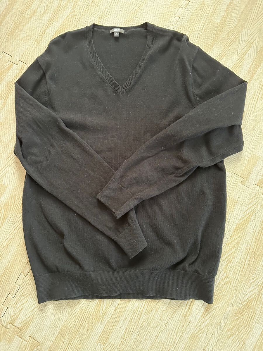 > 美品 ユニクロ UNIQLO Vネック セーター ニット 長袖 XL 濃紺 ネイビー 学生 制服 スーツの防寒に スクールニット ベスト