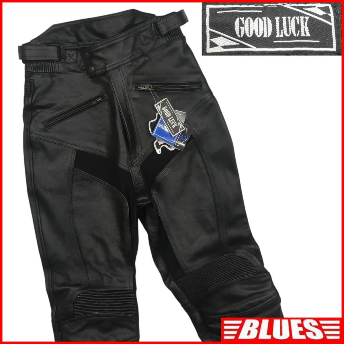 - 即決★GOOD LUCK★W30 レザーパンツ グッドラック メンズ 黒 メッシュ 本革 ライダースパンツ 本皮 ライディング タグ付き