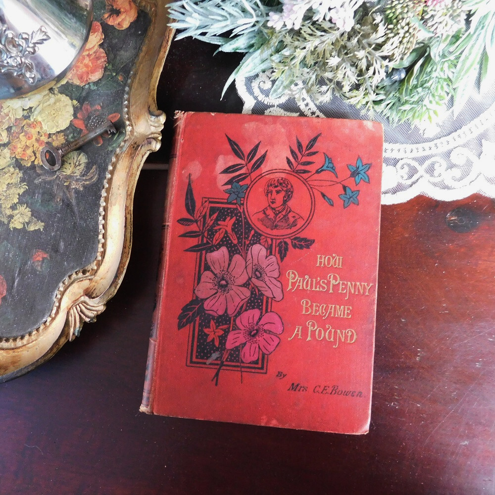- *+ 19世紀 お花のイラスト付き表紙の古書 ヴィクトリア時代 フローラル 英国の小説 アンティークブック ヴィンテージ本 洋書 骨董