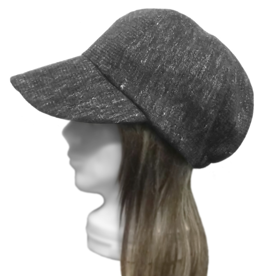 > ハンドメイド◆つば広キャスケット◆ウールスラブツイードニット/グレー系 ◇紫外線対策・ゆったり・小顔効果・寒い季節におすすめ◇