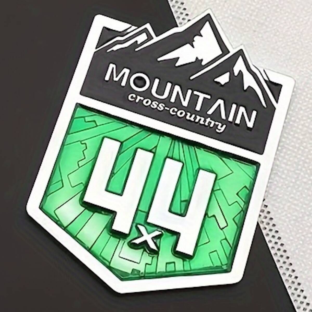 - エンブレム おしゃれ マウンテン 4×4 ステッカー 立体 8.4cm グリーン 緑 金属 車用 ロゴ バイク かっこいい 傷防止 外装 シール t4123