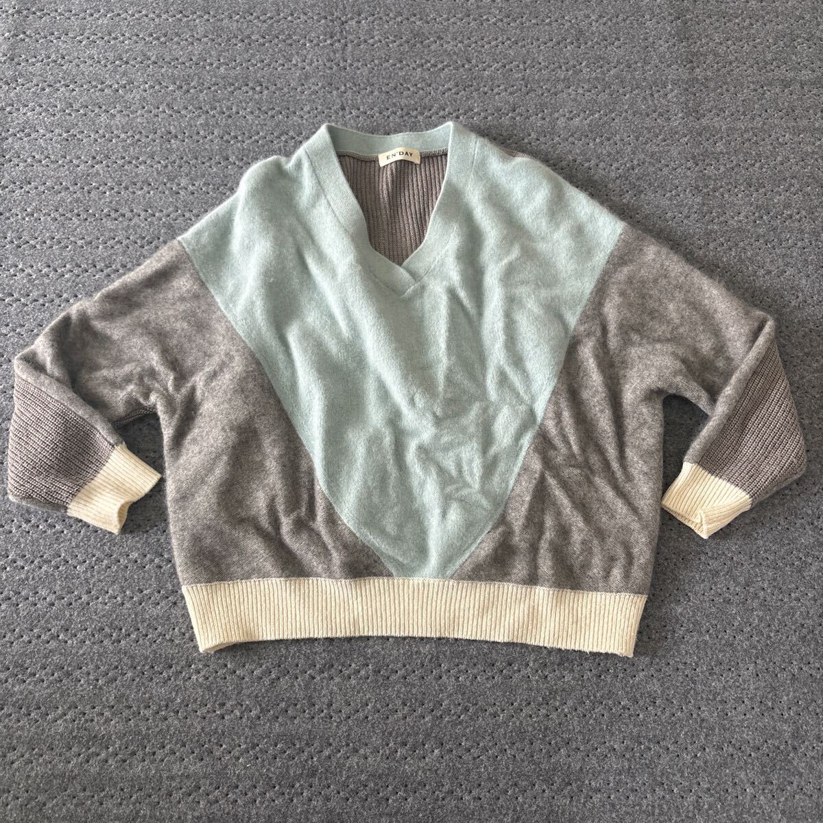 - エンデイ EN'DAY ラクーン ニット コンビ バイカラー Vネック/トップス/長袖/セーター/ブルー/グレー/ブランド/レディース/配色★2456-4