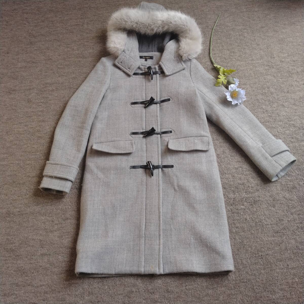 > rienda リエンダ ファー ダッフルコート グレー アクリル系91% ポリエステル9% used #24