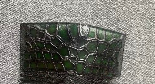 - QB 緑 腹革 人工養殖 二つ折り財布 腹革 人工養殖 アリゲーター◆手染 クロコ メンズウォレット 紳士用 本物 ワニ革 メンズ