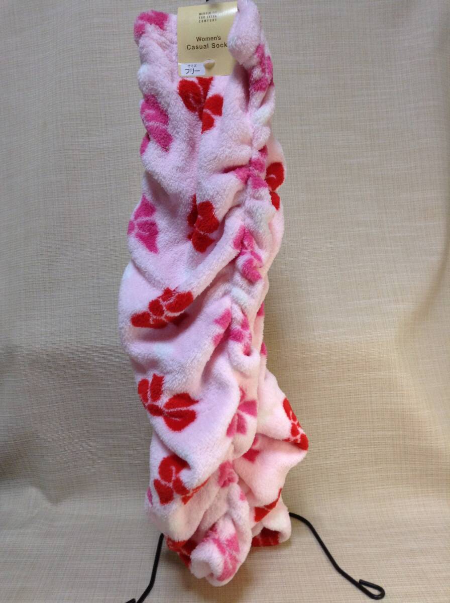 レッグウォーマー ピンク サイズフリー リボン柄 カジュアルソックス ポリエステル ルーズ 防寒,暖か,温か 足,足首