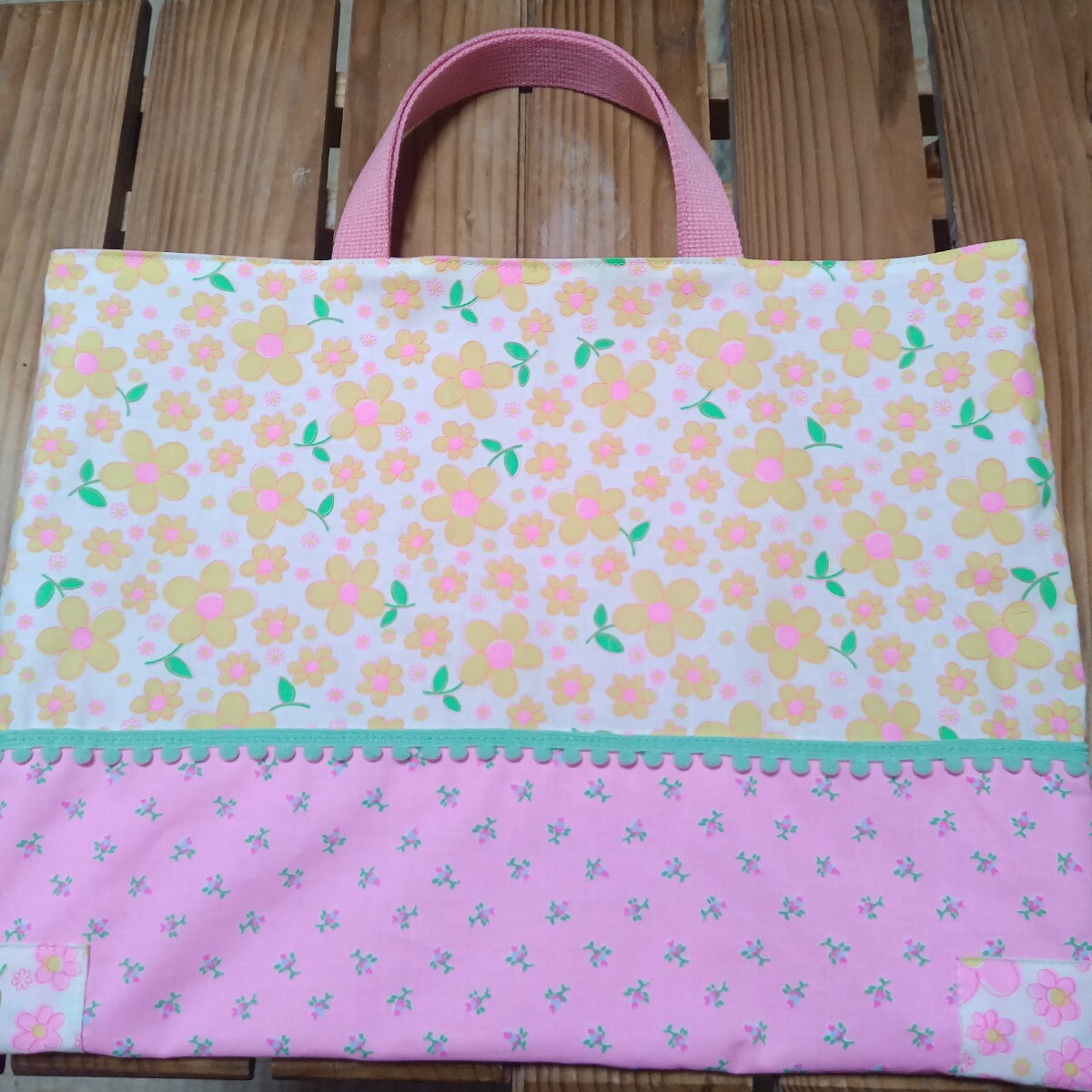- 入園入学準備 ピンクス pinks 手提げ レッスンバック 女の子 絵本袋 パッチワーク トートバッグ 小学校 保育園 幼稚園