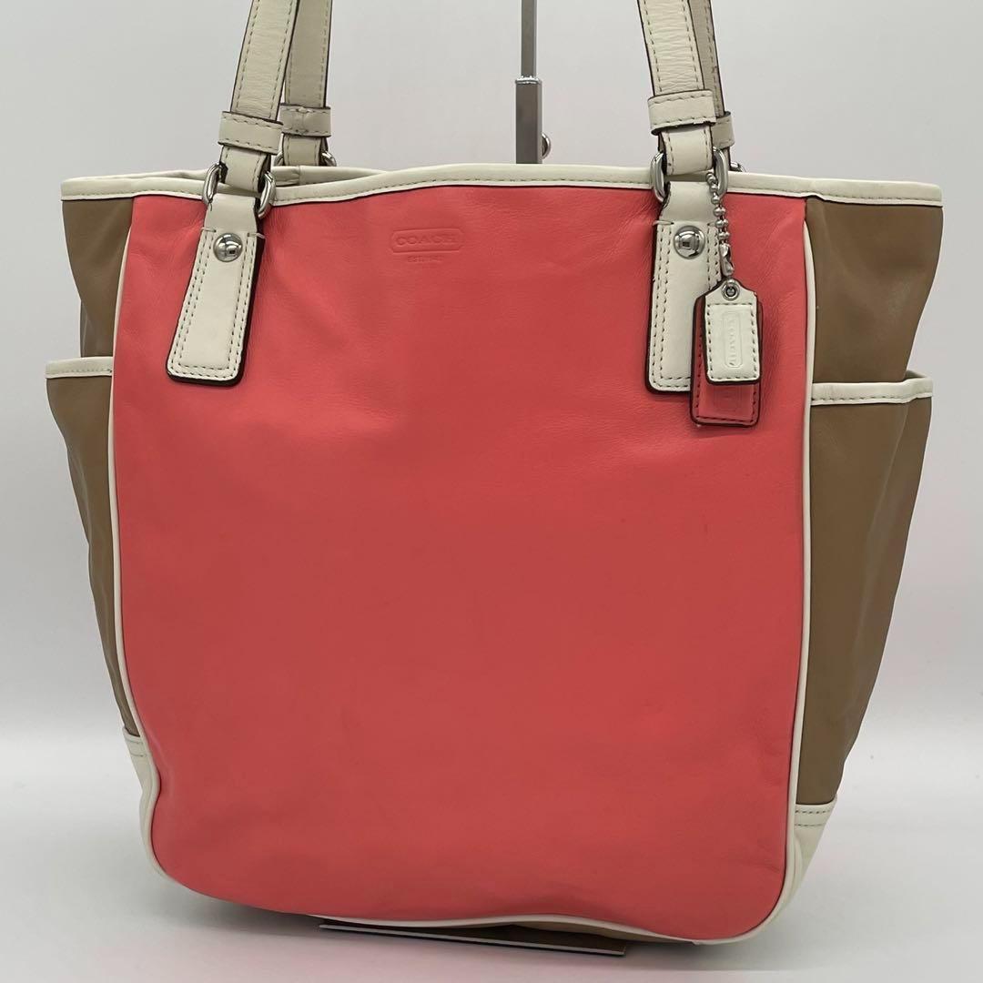 - 【美品】COACH コーチ ハンドバッグ トートバッグ バイカラー 肩掛け A4サイズ レザー 大容量 レディース ブラウン BB000416C