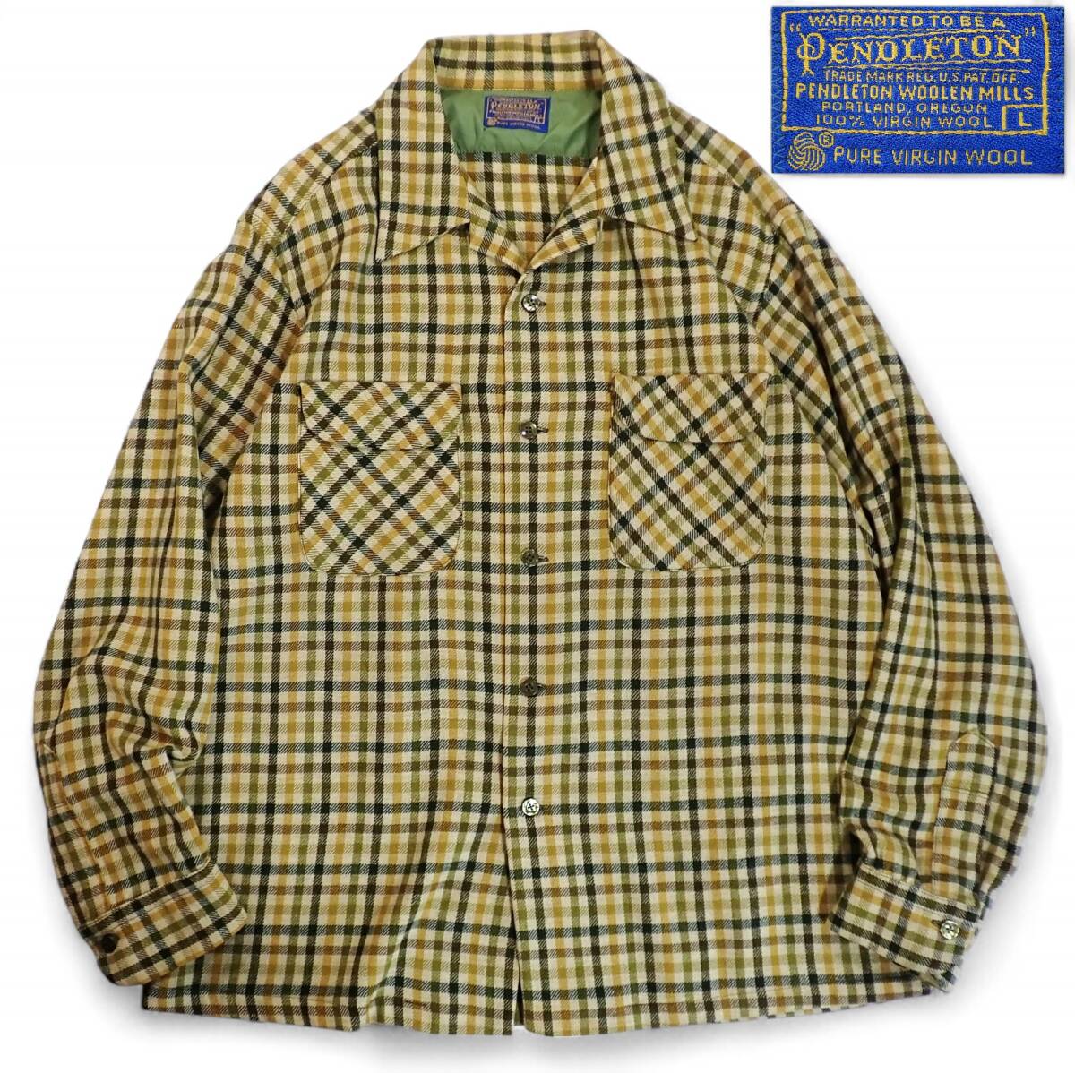 > 6297/PENDLETON 60sビンテージ ウール ボードシャツ L●オープンカラー USA製 フラップポケット ペンドルトンVintage●洗濯プレス済●古着