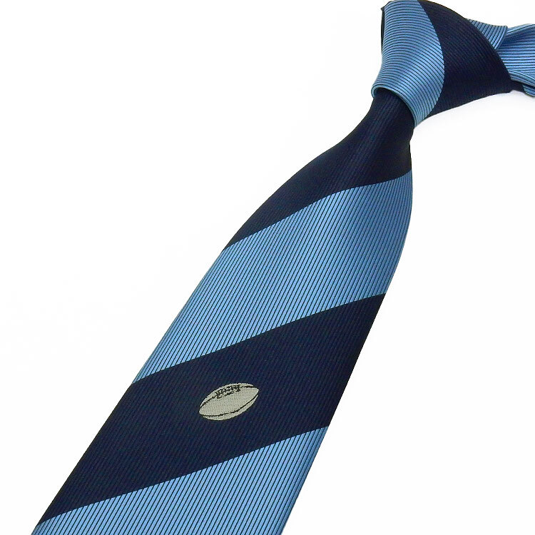 - スポーツ応援タイ ラグビー サックス×紺 ストライプ/ワンポイント 日本製ネクタイ 甲州織 NSP11-10