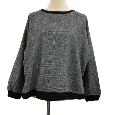 - アズノウアズ as know as カットソー プルオーバー ラウンドネック 切替 ニット グレンチェック リブ 長袖 黒 白 ブラック ホワイト