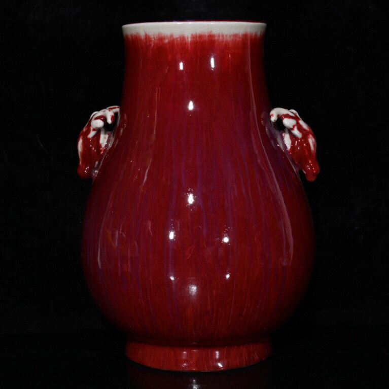 - 【超珍館蔵】清 康熙年製款 古陶瓷品 郎紅 開片 鹿頭尊 置物 古賞物 古美術品 稀少珍蔵品