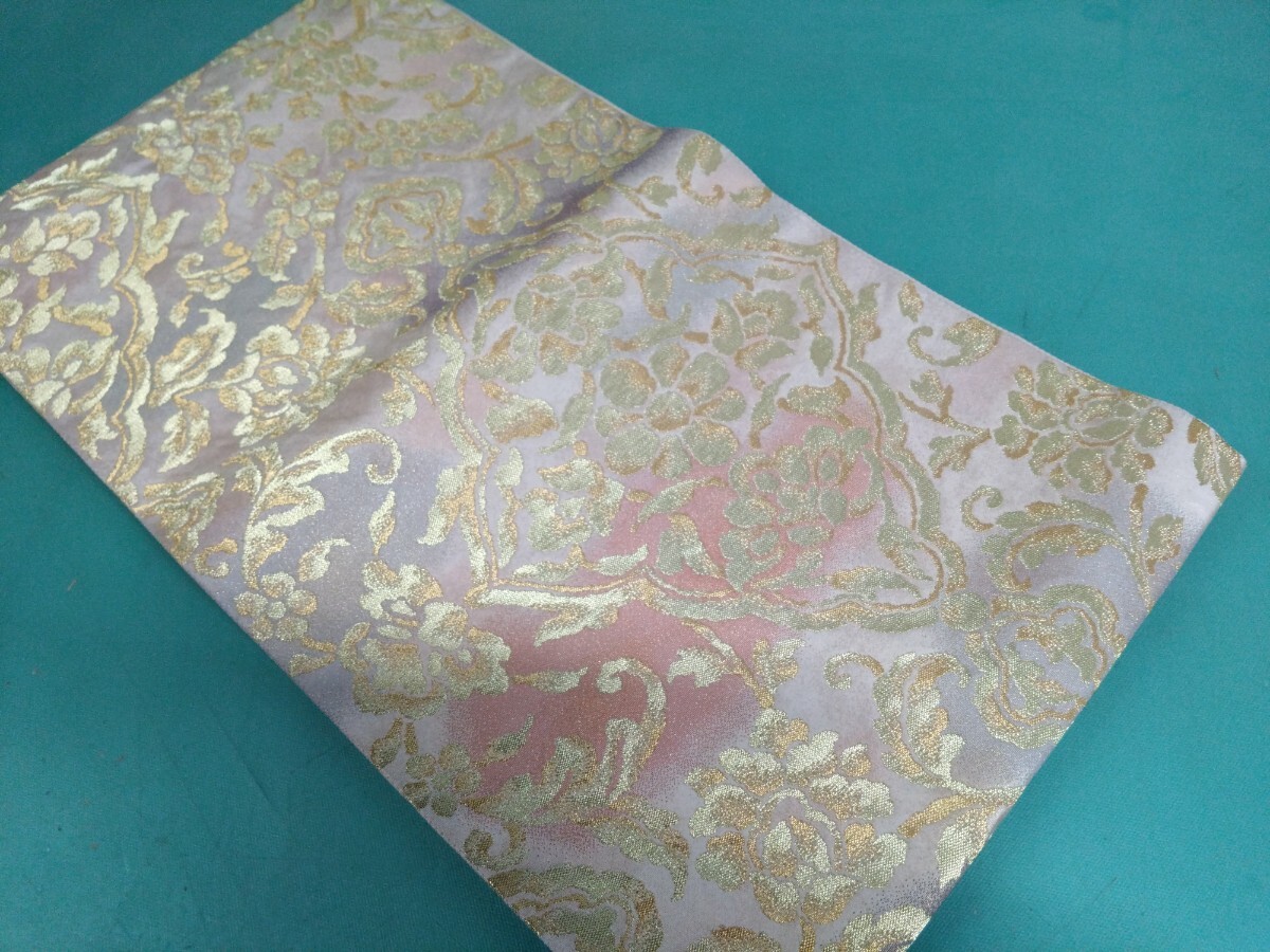 - ●157【正倉院菱文】【伝統工芸士 東海鳳生】銘 落款 高級 袋帯 金彩 輝き 光沢 煌 雅 豪華絢爛 六通 帯 縁起物 中古 ③