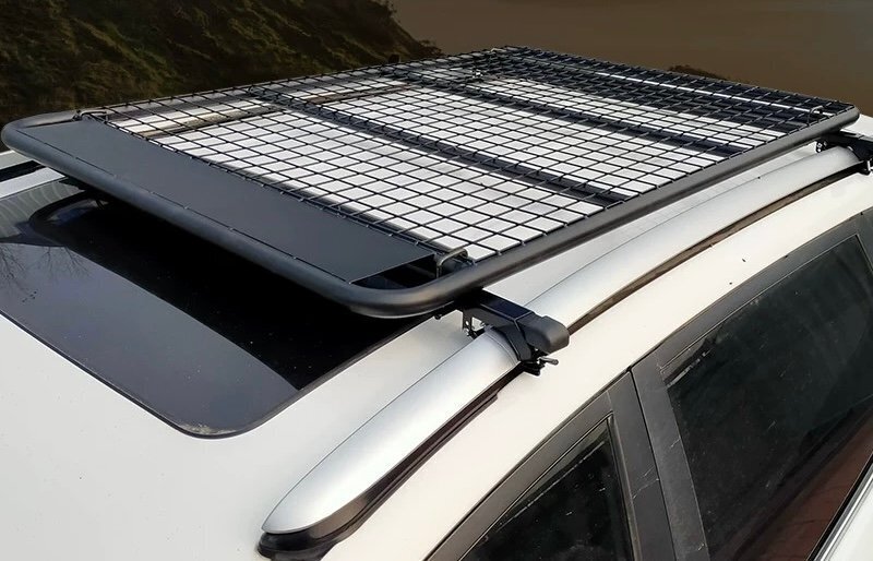 > ルーフキャリア ルーフラック フラット マンガン鋼製 取り付け部品付き スクエアバー対応 長さ1.4×幅0.98m 最大積載150kg