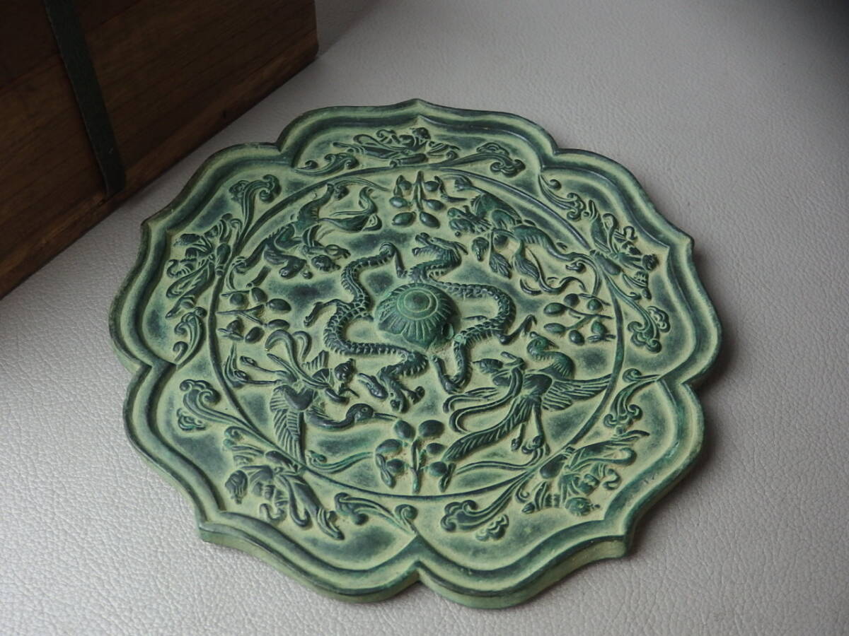 - 【骨董・茶道具】★青銅製★★双龍鳳凰文古鏡 fq054tb.7 仏教美術