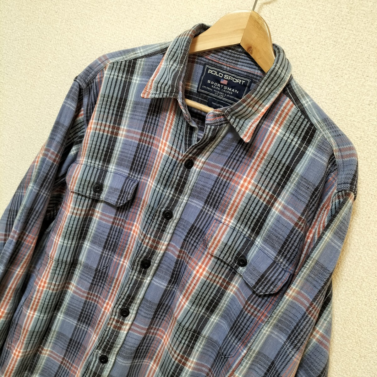 - ☆POLO SPORT RALPH LAUREN ポロスポーツラルフローレン ヘビーネルシャツ チェック ブルー 青系 サイズL ヴィンテージ オールド 古着 USED