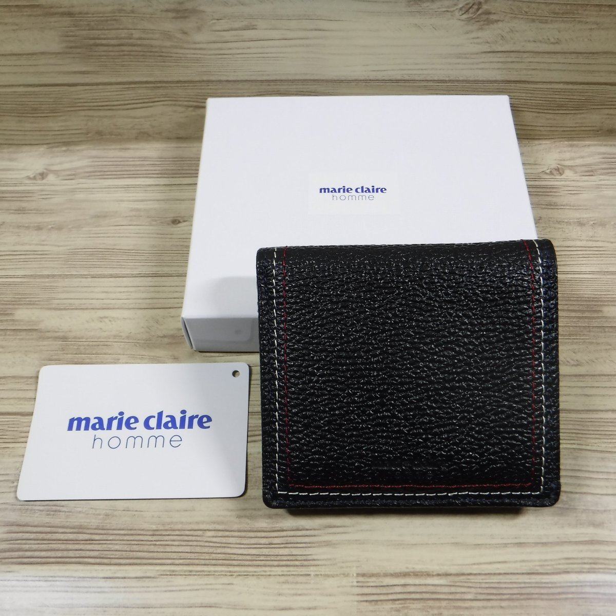 > QQ832 マリクレール オム 新品 黒 山羊革 2つ折り財布 ゴートスキン コンパクト財布 ミニ財布 marie claire ブラック