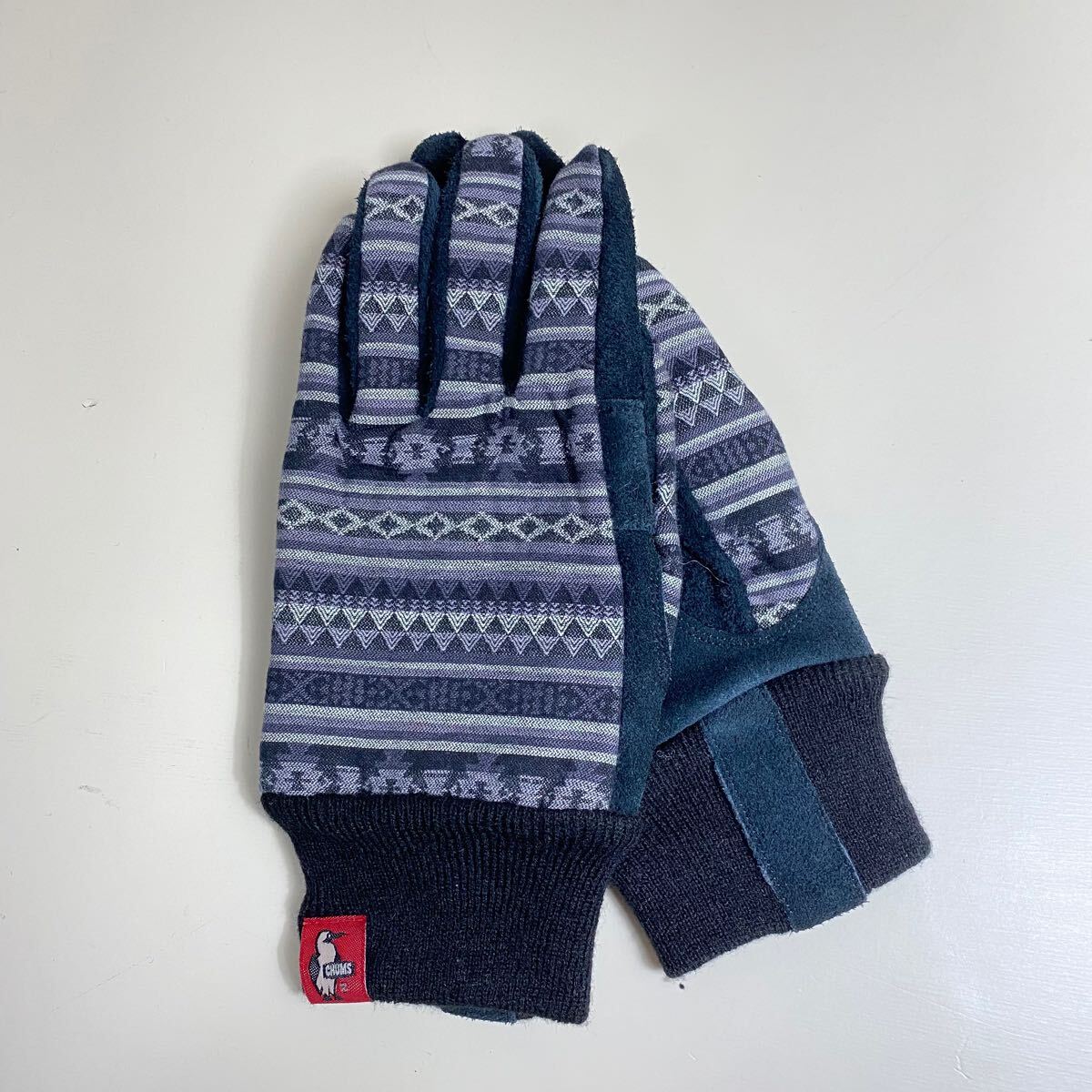 > ● CHUMS ◆ レザー × コットンジャガード 手袋 ネイビー系 Mサイズ (CH09-0587) 裏フリース グローブ チャムス ◆W7 こD3MH-11