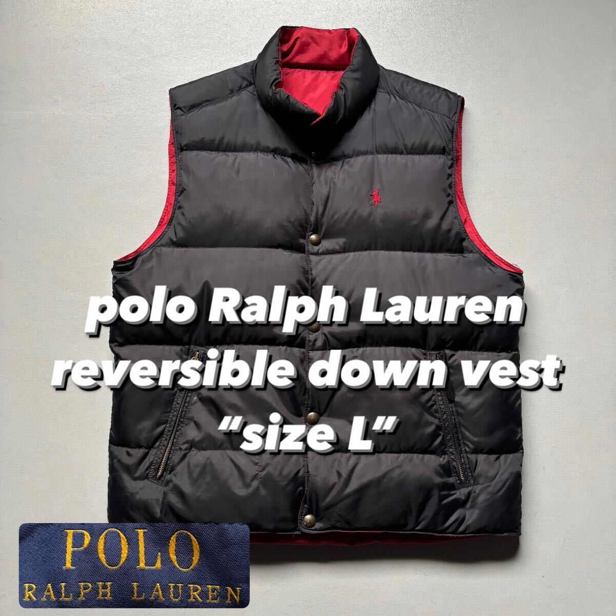 > polo Ralph Lauren reversible down vest “size L” ポロラルフローレン リバーシブル ダウンベスト 黒 ブラック 赤 レッド