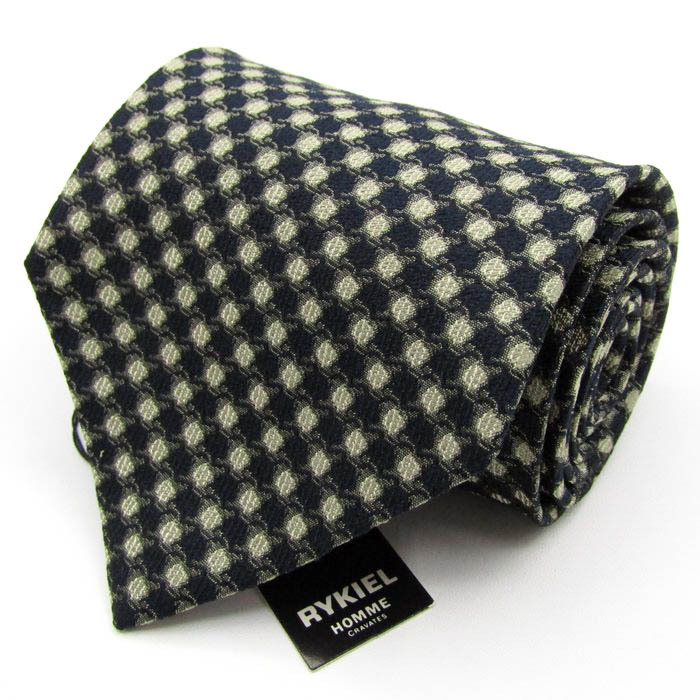 > リキエル オム ブランド ネクタイ チェック柄 ドット シルク 未使用タグ付 PO メンズ ネイビー RYKIEL HOMME