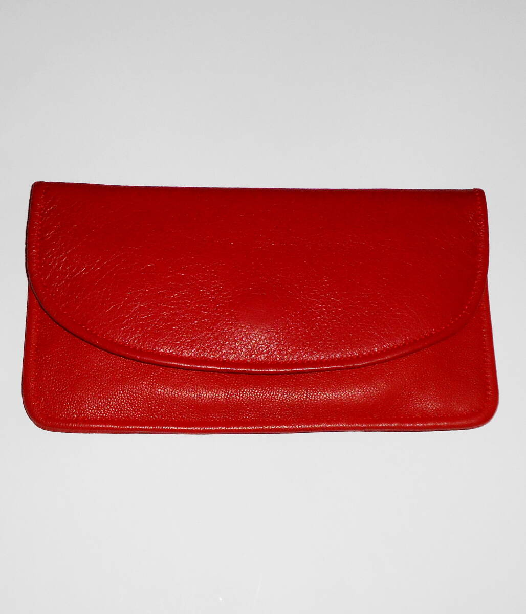 - 送0 未使用【 革製 財布 アイルランド製 】羊皮 赤 スナップ・ファスナー付 小物入れにも ラムレザー
