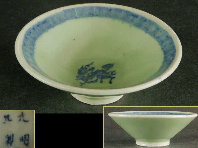 - 大明年製 青磁 麒麟図 碗 茶碗 中国